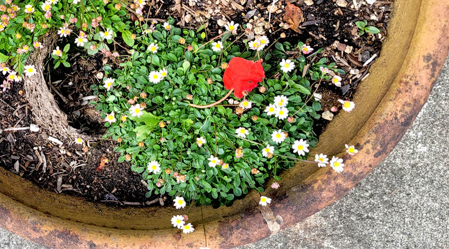 I saw a red leaf today–an oddity in the first week of July.  It was out of place, sitting beneath a conifer tree without a deciduous tree or plant anywhere around to account for its presence….